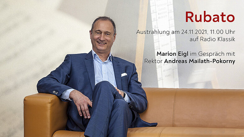 Live zu Gast war der Rektor außerdem in der Radio Klassik-Sendung Rubato am 24.11.2021 um 11.00 Uhr. Mit Marion Eigl spricht er über die MUK im Wandel der Zeit und bewusste Erinnerungskultur. Die Sendung kann hier nachgehört werden: