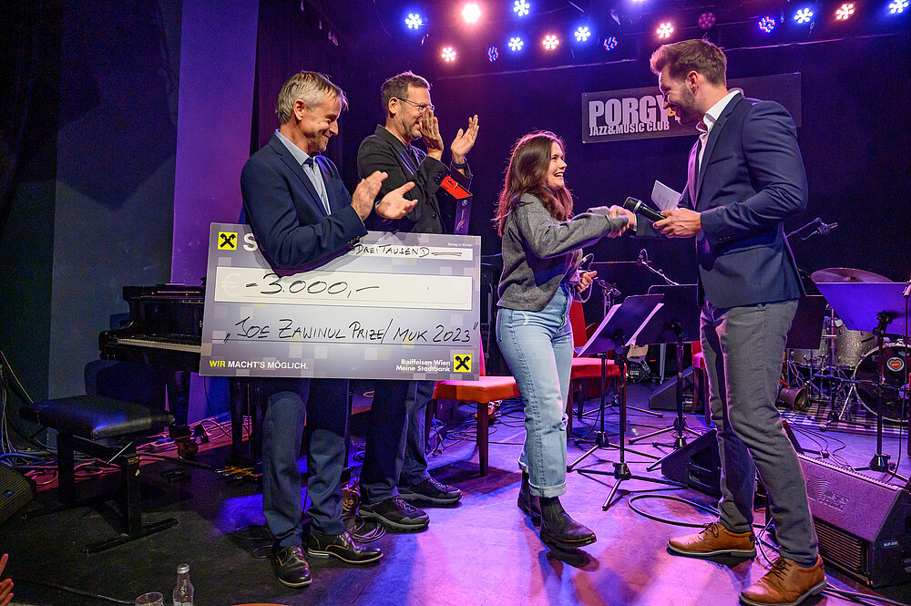 Die mit externen Musiker*innen, MUK-Lehrenden, Journalist*innen und Musikmanager*innen prominent besetzte Fachjury ermöglicht Reisigl mit der Vergabe des von der Raiffeisen Wien. Meine Stadtbank gesponserten Stipendiums die Umsetzung des Vorhabens einer „Vienna Live Sessions“-EP: Für diese EP sollen drei Live-Sessions an „unorthodoxen Plätzen in Wien“ (Reisigl) aufgenommen und für die Veröffentlichung auf Audio- und Videoplattformen vorbereitet werden. Übergeben wurde der Preis von Gerhard Zachl (Prokurist von Raiffaisen Wien) und Lars Seniuk, Initiator und Juryvorsitzender des Joe Zawinul Prize, der die Entscheidung kommentierte: „Anna Reisigl überzeugte mit ihrer Bewerbung nicht nur durch hohes musikalisches Niveau. Sie präsentierte auch noch einen spannenden und originellen Ansatz, um die gewohnten Pfade von Jazzmusik und auch die angestammten Jazzlocations zu verlassen und ihre Musik darüber hinaus hör- und sichtbar zu machen.“
