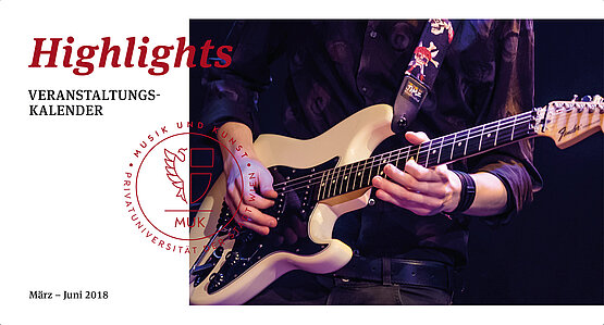 Soeben ist der Veranstaltungskalender für das Sommersemester 2018 erschienen und liefert einen Überblick über das vielfältige Programm unserer Universität. Der Folder liegt ab sofort zur freien Entnahme an allen Standorten der MUK auf, Abonnentinnen und Abonnenten dürfen sich in den kommenden Tagen über ihr persönliches Exemplar per Post freuen.