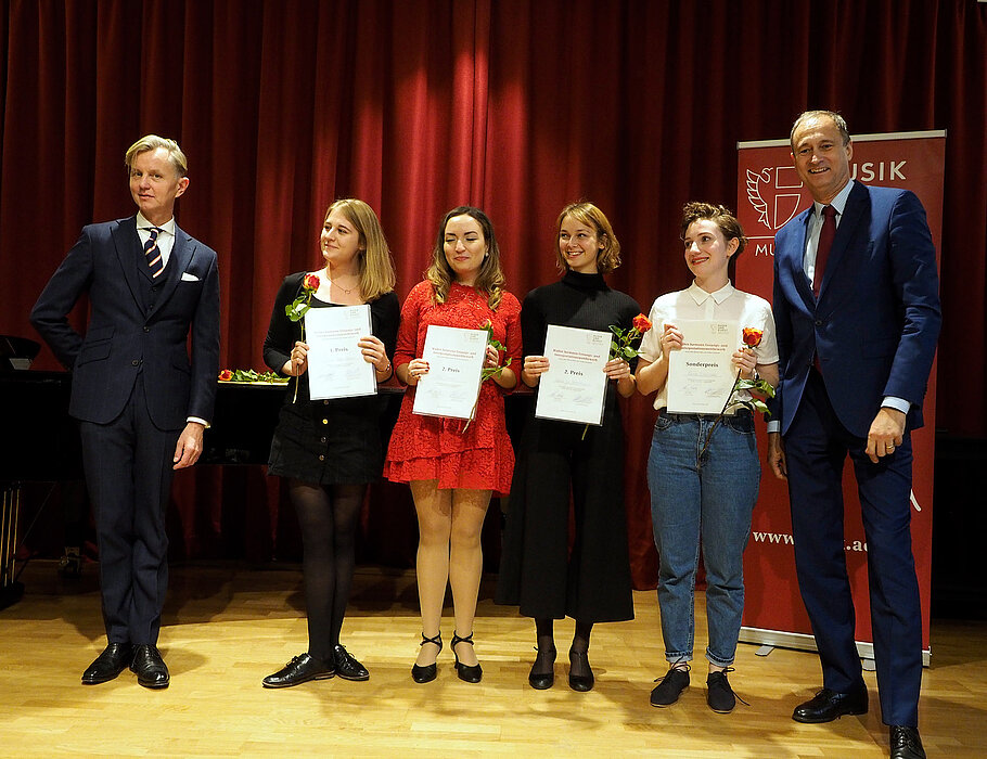 Julia Sturzlbaum konnte mit ihrem Programm die Jury von sich überzeugen und sich den Ersten Platz sichern. Den Zweiten Platz belegten ex aequo ihre Studiienkolleginnen Deike gr. Darrelmann und Lea Gordin. Lara Sienczak durfte sich über einen Sonderpreis der Jury freuen. Die Urkunden wurden von Rektor Dr. Andreas Mailath-Pokorny und Jurmann-Interpret Max Raabe überreicht.