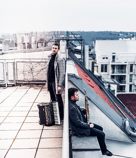 In seinem neuen Programm unter dem Titel EastWest erkundet das Duo Aliada Landesgrenzen und Besonderheiten osteuropäischer und amerikanischer Musikwelten. Sowohl Michał Knot (Saxophon, MUK-Absolvent aus der Klasse von Lars Mlekusch 2015) als auch Bogdan Laketic (derzeit Master-Studierender Akkordeon bei Grzegorz Stopa) verbinden mit dieser Thematik zahlreiche persönliche Erlebnisse. Beide sind aus ihrer östlichen Heimat (Polen bzw. Serbien) nach Westen, nach Wien gezogen. Eine Stadt, welche diese zwei Welten seit Jahrhunderten verkörpert. Mit ihrer Neugierde für Neues, verbunden mit Bewusstsein für Herkunft und Tradition, sowie ihrer Virtuosität lassen sie Grenzen verschwinden. So entführen sie ihr Publikum an einen Ort, wo Barrieren zwischen Ost und West in den Hintergrund treten.