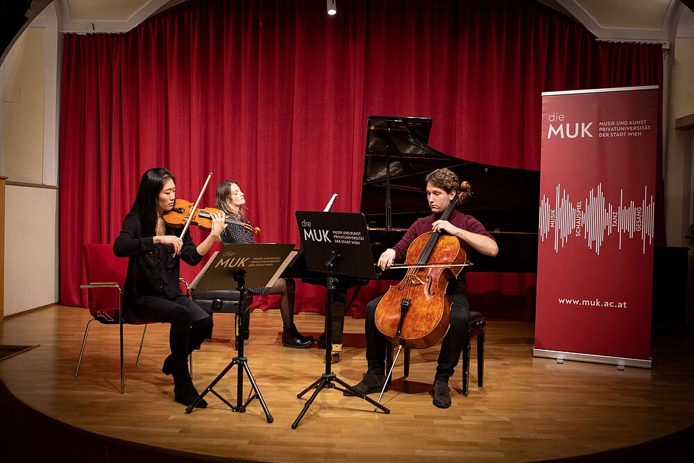 Zum ersten Mal wurde in Zusammenarbeit zwischen der MUK und HFP Steuerberater im Dezember 2021 ein Kammermusikwettbewerb veranstaltet. Lana Trimmer, Urh Mrak und Uliana Cheklina haben als IllusTrio die Jury überzeugt und ein Stipendium im Wert von 1.500 Euro erhalten.