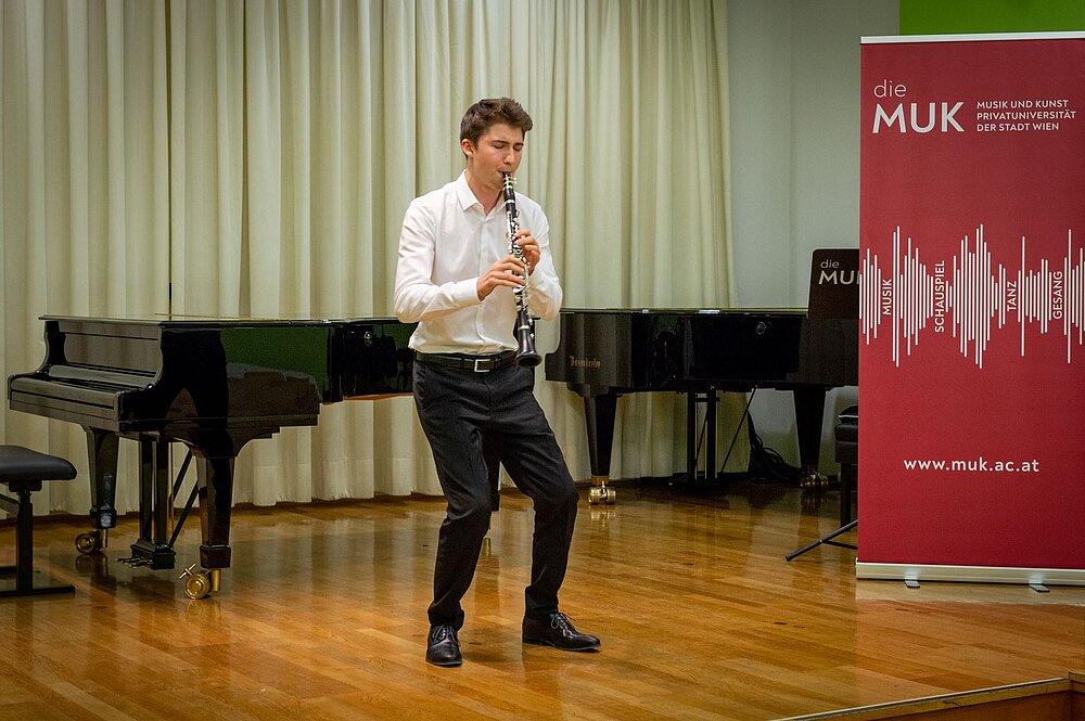 Erstmals hat die MUK in Zusammenarbeit mit der Gottfried von Einem Musik-Privatstiftung einen Wettbewerb für die Interpretation zeitgenössischer Musik veranstaltet. Studierende aller österreichischen Musikuniversitäten waren aktiv zur Teilnahme aufgerufen. Als Gewinner geht der Klarinettist Paul Moosbrugger hervor.