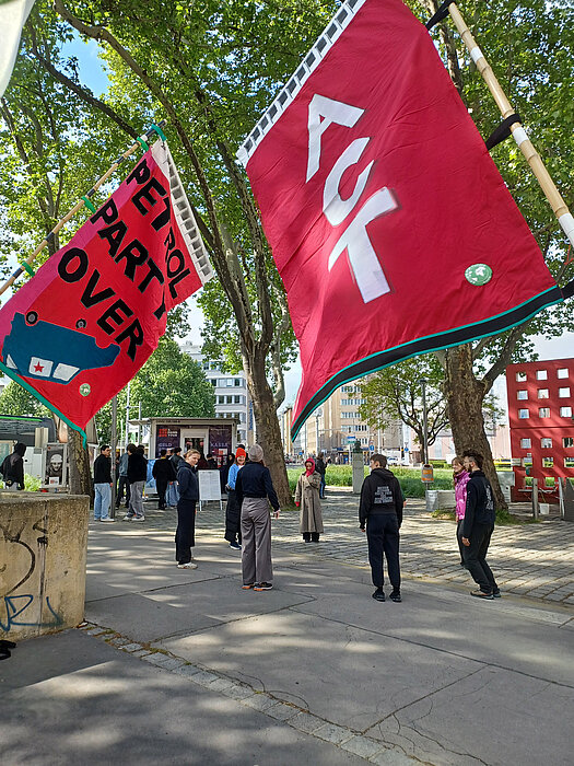 Studierende des 2. Jahrgangs Zeitgenössische Tanzpädagogik (MUK) werden gemeinsam mit Artists4Future, die sich mit Klimafahnen beteiligen, am 13. Juni 2025 um 17:00 Uhr jeweils bei der Fußgängerampelphase GRÜN bzw. der Autophase ROT an der Straßenkreuzung Operngasse/ Friedrichstrasse/ Girardipark (1010 Wien) künstlerisch aktiv werden und so eine gerechtere Klimalösung, Beruhigung im Stadtverkehr und gegenseitigen Respekt aller Verkehrsteilnehmer*innen einfordern.
