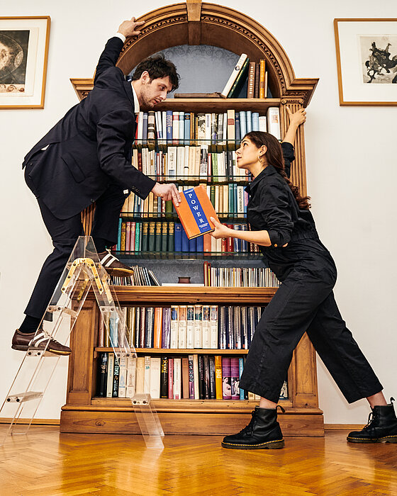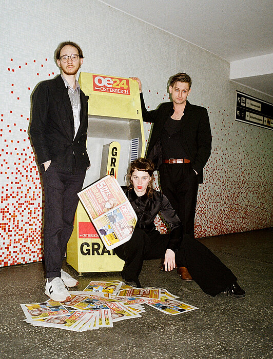 Schon 2019 und 2020 waren Benita Martins, Hannah Rang und Runa Schymanski, damals noch Studentinnen an der MUK, mit ihrer Schöpfung Gib mir ein F, mit dem sie zuvor bereits den Fidelio-Wettbewerb gewannen, bei HIN & WEG dabei. Auch heuer wird es eine Wiederaufnahme ihres Werks geben — doch nicht nur das, die drei sind mit ihrer Regisseurin Fritzi Wartberg gleich noch mit einem zweiten Stück mit von der Partie. Clemens Berndorff, Enrico Riethmüller, Tobias Resch, Naemi Latzer und Estera Stenzel sind ebenfalls vor Ort.