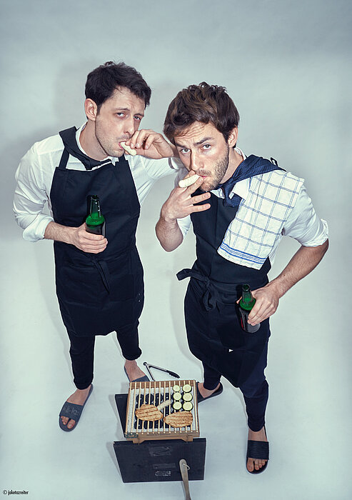 Enrico Riethmüller ist gemeinsam mit seinem ehemaligen Studienkollegen Tobias Resch gleich nochmal am Start: In ihrem Stück Wer hat Angst vorm weißen Mann? richten zwei smarte Hobbygrillmeister ein sommerliches Gartenfest aus und ringen inmitten der geladenen Gäste um ihre scheinbar so bedrohte Männlichkeit.