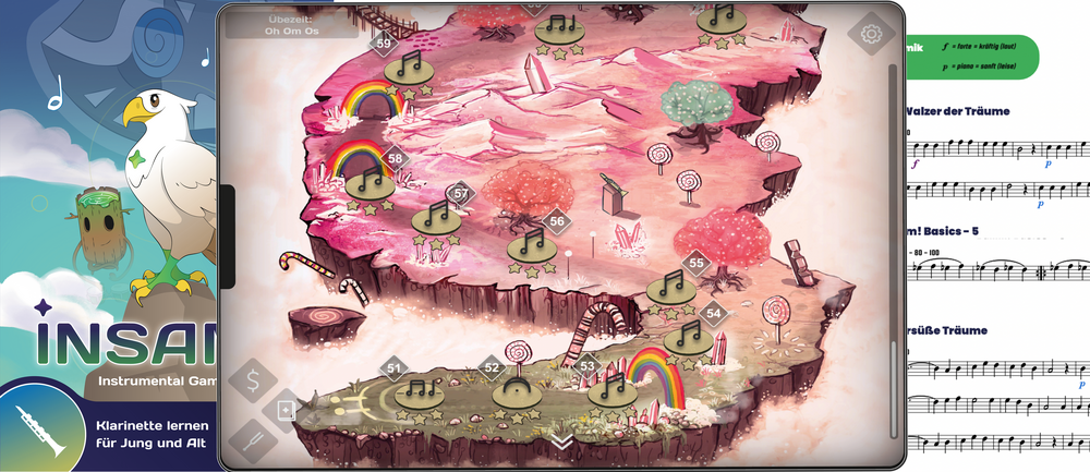 Insame zielt darauf ab, das Erlernen von Blasinstrumenten zu einem interaktiven und unterhaltsamen Erlebnis zu machen. Die App ist in eine fesselnde Storyline eingebettet und führt die User*innen durch verschiedene Levels, die ihre musikalischen Fähigkeiten nicht nur herausfordern, sondern gleichzeitig auch fördern.