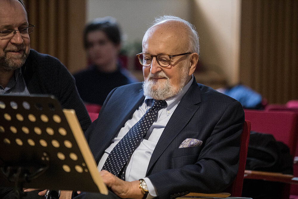 Ein aufrichtiger Dank unserer Universität gilt Herrn Penderecki für seine wertvolle, engagierte Arbeit mit den Studierenden sowie auch für das generöse Geschenk zahlreicher Aufnahmen seiner Werke an die Bibliothek der MUK.