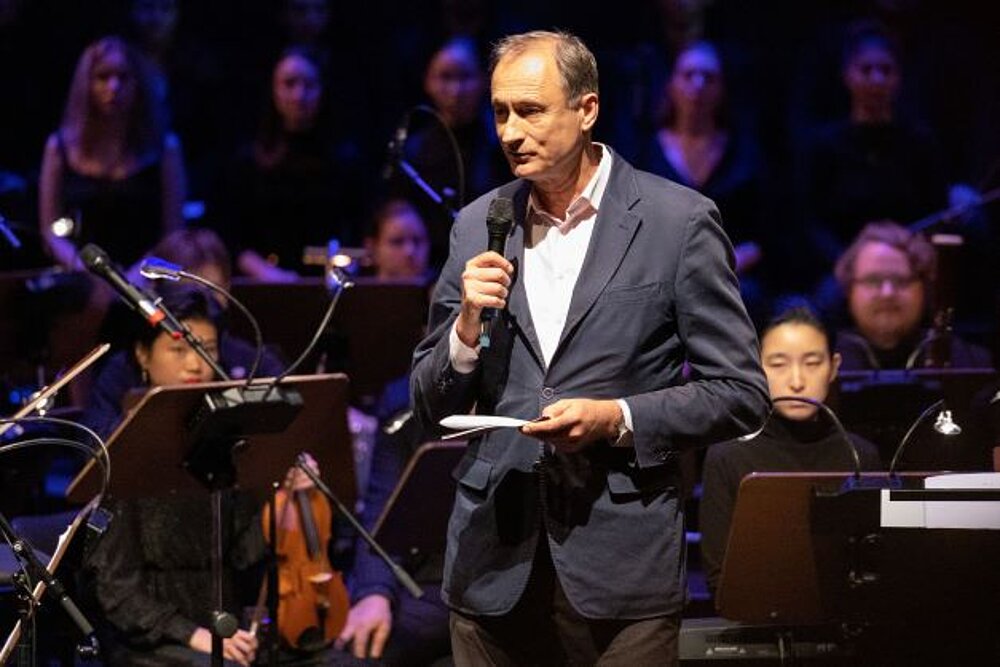 Andreas Mailath-Pokorny, Rektor der Musik und Kunst Privatuniversität der Stadt Wien: „Wir alle tragen Verantwortung für unser Miteinander. Wie wichtig der Dialog ist und wie sehr der gesellschaftliche Friede und das Gemeinwohl auch von jedem Einzelnen abhängen, wird uns immer wieder aufgezeigt. 2022 wäre Joe Zawinul, einer der bedeutendsten Alumni der MUK, 90 Jahre alt geworden. Dieses Konzert ist auch eine Hommage an ihn, den universellen Musiker und Künstler, der sich stets für Weltoffenheit, Toleranz und Humanität eingesetzt hat.“