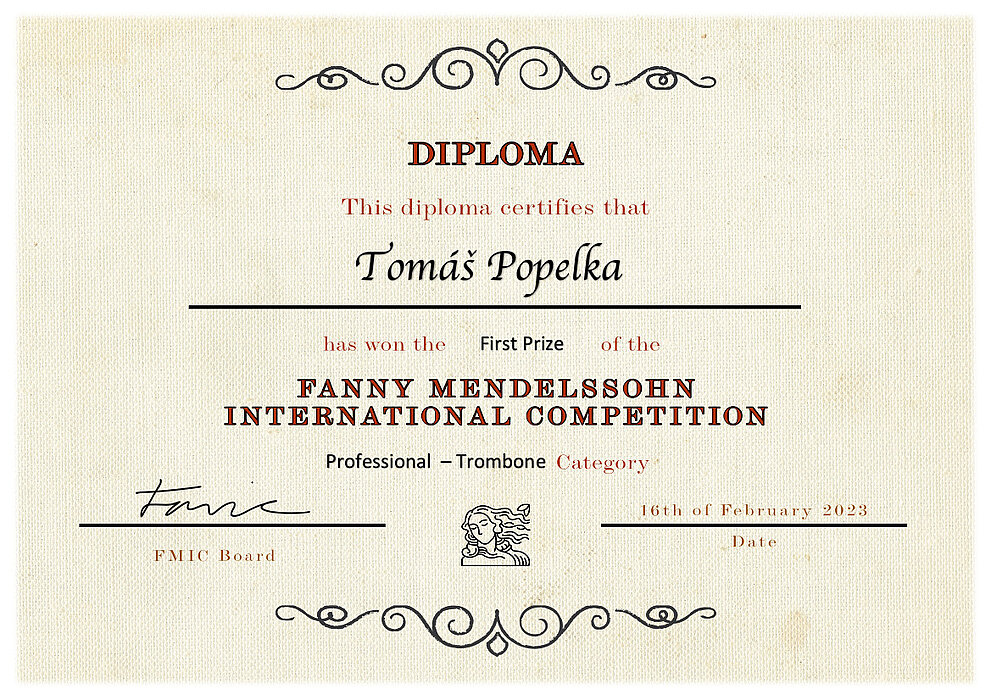 Bei der Fanny Mendelssohn International Competition erhält der junge Musiker in der Kategorie "Professional Trombone" einen ersten Preis. Seit 2019 studiert er bei Mikael Rudolfsson an der MUK.