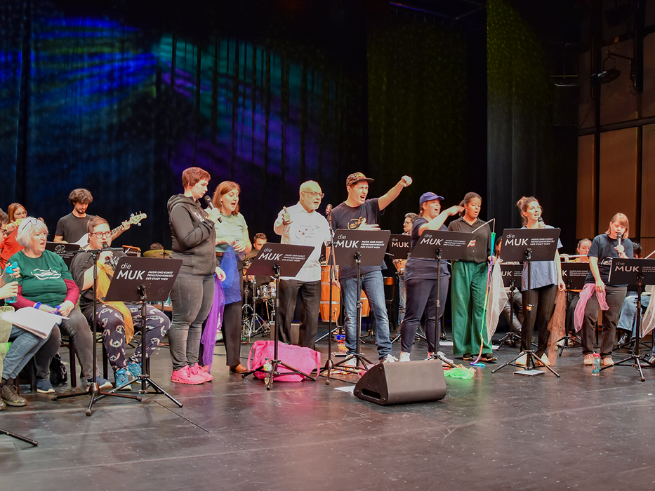 Der Abend des ersten Aktionstags gehörte der All Stars Inclusive Band, dem von Helga Neira-Zugasty an der Universität für Musik und darstellende Kunst (mdw) initiierten und von Marlene Lacherstorfer aufgebauten inklusiv musizierenden Ensemble.