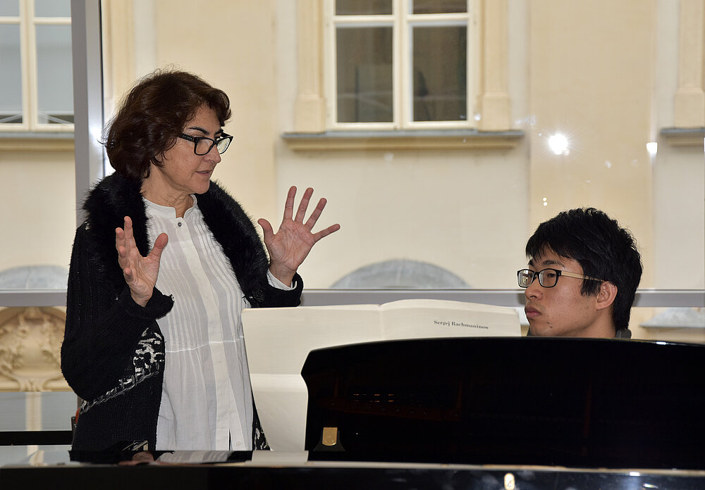 Im Rahmen des Kooperationsabkommens der MUK mit der Botschaft des Königreiches Spaniens konnte dieses Jahr am 11. und 12. Dezember die international anerkannte Pianistin Rosa Torres Pardo, Preisträgerin des Nationalen Musikpreises 2017, für eine Meisterklasse an unserer Universität eingeladen werden. Rosa Torres Pardo zählt zu den führenden Interpretinnen des spanischen Klavierrepertoires, das hierzulande viel zu selten zu hören ist. Zehn Pianistinnen und Pianisten der MUK unterschiedlicher Nationalitäten hatten sich auf die Auseinandersetzung mit der speziellen Stilistik dieser Musik eingelassen und wurden mit einer zündenden und abwechslungsreichen Meisterklasse belohnt.