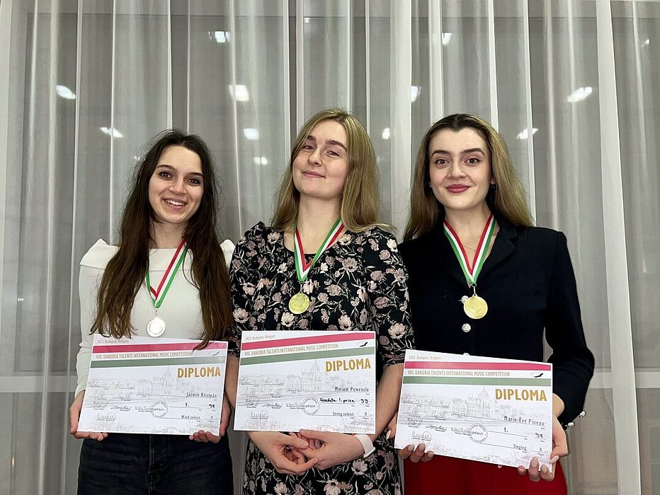 Sopranistin Marie-Ève Pineau, Geigerin Miriam Ewa Powrósło und Flötistin Jázmin Bristyán erringen Erste Preise in Budapest.