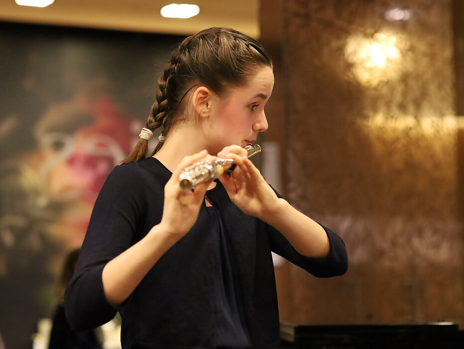 Die junge Flötistin, die im Vorbereitungslehrgang bei Andrea Wild studiert, gewinnt den Ersten Preis beim Schweizerischen Jugendmusikwettbewerb (SJMW). Dabei qualifizierte sie sich als eine von nur fünf Flötist*innen aus insgesamt 25 Teilnehmenden schon in der ersten Runde für das Finale.