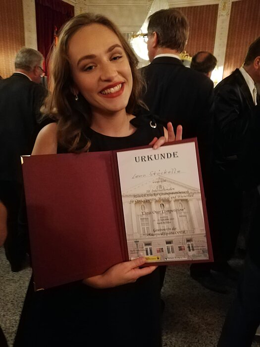 Der 10. internationale Heinrich Strecker Gesangswettbewerb CROSS OVER COMPETITION für die Schwerpunkte Oper, Operette, Musical und Wienerlied fand von 18. bis 21. September an der Bühne Baden statt. Lena Stöckelle überzeugte die renommierte Jury und gewann den Ersten Preis in der Kategorie Oper. Den Schwerpunkt Musical gewann ebenfalls eine MUK-Absolventin: Caroline Zins, die 2012 den Studiengang Musikalisches Unterhaltungstheater abgeschlossen hat. Die Gewinner*innen präsentierten sich am 21. September abschließend bei einem Galakonzert.