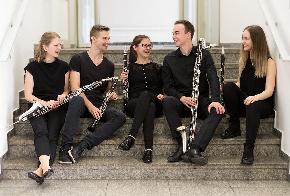 Das Ensemble NA+5 formierte sich aus den fünf jungen, österreichischen Klarinettist*innen Lisa Wagner, Thomas Prem, Hannah Friedl, Johanna Gossner und Manuel Ernst, die sich im Zuge ihres Studiums an der MUK bei Alexander Neubauer kennengelernt haben. Für sie stellt es einen besonderen Reiz dar, die Möglichkeiten des Klarinettenensembles auch abseits der üblichen Quartettliteratur in Arrangements für Klarinettenquintett zu ergründen. Beim Musizieren im Ensemble stehen für die Musiker*innen von NA+5 vor allem ein packendes Klangbild und die jugendliche Spielfreude im Mittelpunkt. Beim 2. Internationalen Franz Cibulka Musikwettbewerb darf sich das Ensemble über einen Erfolg, den mit 2.000 Euro dotierten 3. Preis freuen!