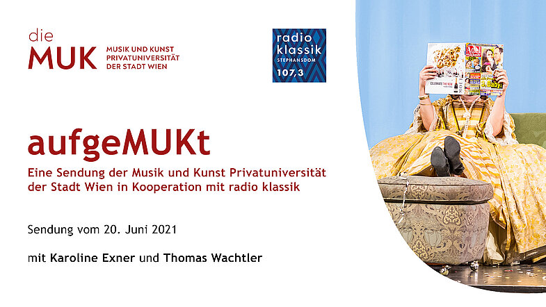 In der aktuellen aufgeMUKt!-Sendung berichten Karoline Exner (Dekanin Darstellende Kunst und Studiengangsleiterin Schauspiel) und Thomas Wachtler (3. Jahrgang Schauspiel) über die Vorbereitungsphase und den Ablauf des ersten digitalen Schauspielschultreffens. Zu hören sind auch die Jingles, die Studierende des Studiengangs Jazz eigens für die Veranstaltung komponiert haben.
