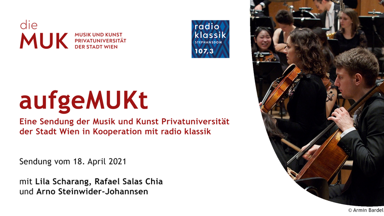 Die neue aufgeMUKt-Sendung stellt die Kooperation zwischen den Tonkünstlern und der MUK in den Mittelpunkt. Zu Wort kommen Arno Steinwider-Johannsen (Vizedekan der Fakultät Musik und Studiengangsleiter Blasinstrumente und Schlagwerk), die Akademistin und Klarinettistin Lila Scharang sowie Rafael Salas Chia, der bei seiner Bachelor-Prüfung im Rahmen von Auftakt am 17. Juni am Pult des Tonkünstler-Orchesters stehen wird.