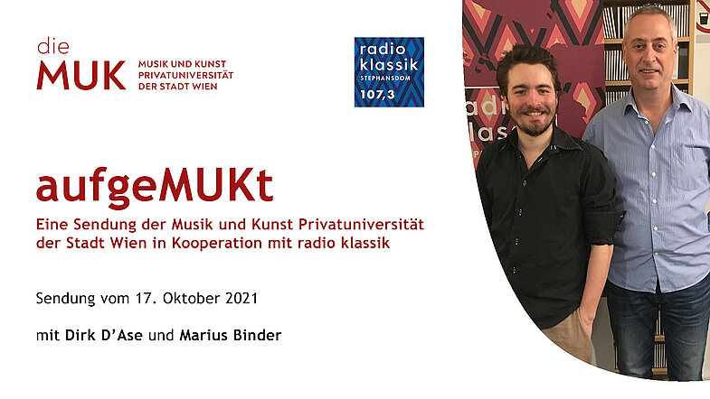 In dieser Sendung steht das Projekt Stand der Dinge, das am 17., 18. und 19. November im MUK.theater in der Johannesgasse zu erleben sein wird, im Mittelpunkt. Projektleiter Dirk D’Ase ist gemeinsam mit Marius Binder, dessen Komposition Teilnahme — neben vier anderen Musiktheaterminiaturen — zur Uraufführung gebracht wird, zu Gast im Studio bei Marion Eigl.
