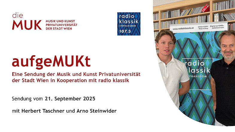 19 Jahre jung, studiert Herbert Taschek nun im dritten Semester Konzertfach Trompete an der MUK bei Roman Rindberger. Im November nimmt er mit einem Brass-Quintett am Internationalen Jan Koetsier-Wettbewerb in München teil. Außerdem substituiert er beim Kärtner Sinfonieorchester. Ein idealtypisches Ineinandergreifen von Studium und früher praktischer Erfahrung. Auftrittsmöglichkeiten für MUK-Studierende gibt es auch wieder im Rahmen von Wien Modern, wie der Dekan der Fakultät Musik an der MUK Arno Steinwider im Gespräch mit Marion Eigl anführt.