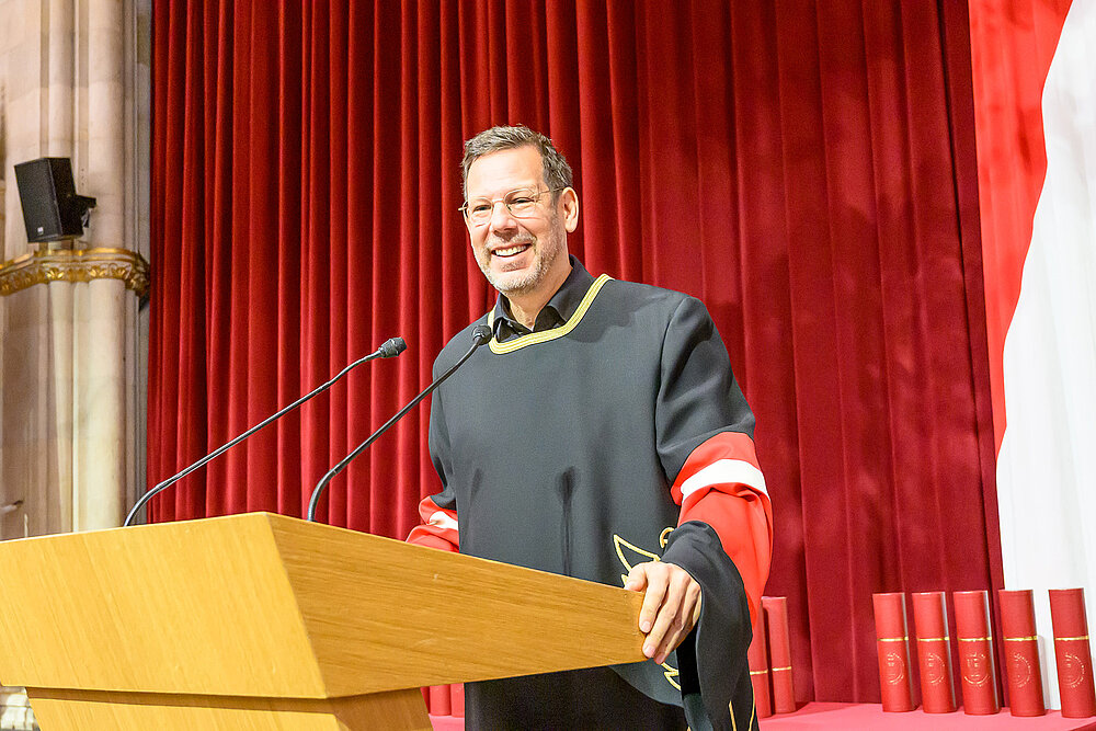 Auch in Vertretung des Bürgermeisters Dr. Michael Ludwig erfolgten einleitende Grußworte der amtsführenden Stadträtin für Kultur und Wissenschaft Mag.a Veronica Kaup-Hasler, die die Leistungen und Kreativität der Studierenden und Absolvent*innen besonders lobte. Auch der Erste Landtagspräsident Ing. Christian Meidlinger gratulierte den Alumni der einzigen Universität der Stadt Wien zum Abschluss ihres Studiums.
