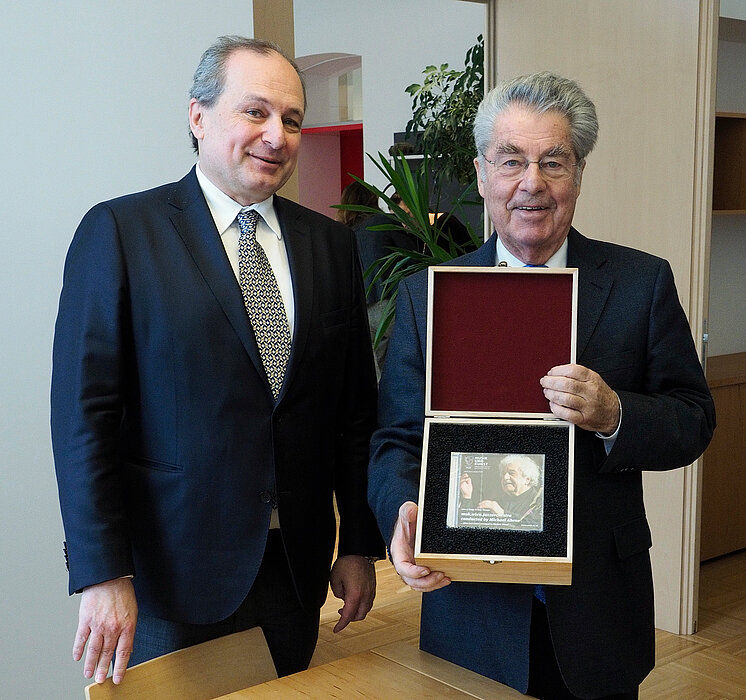 Mit einem anregenden Vortrag von Dr. Heinz Fischer, Bundespräsident a.D. der Republik Österreich, feierte die MUK am 22. Januar 2018 den Auftakt einer Reihe von Veranstaltungen als Beitrag zu den Aktivitäten des Bundeskanzleramtes (oesterreich100.at) zum Gedenkjahr 2018. Unter dem Titel Zur Geschichte der Zweiten Republik im Spiegel von Kunst und Kultur skizzierte Dr. Heinz Fischer als Koordinator von oesterreich100 die wichtigsten Stationen von 100 Jahren Republik und stellte sich in der anschließenden, lebhaften Diskussion den zahlreichen Fragen der Studierenden.