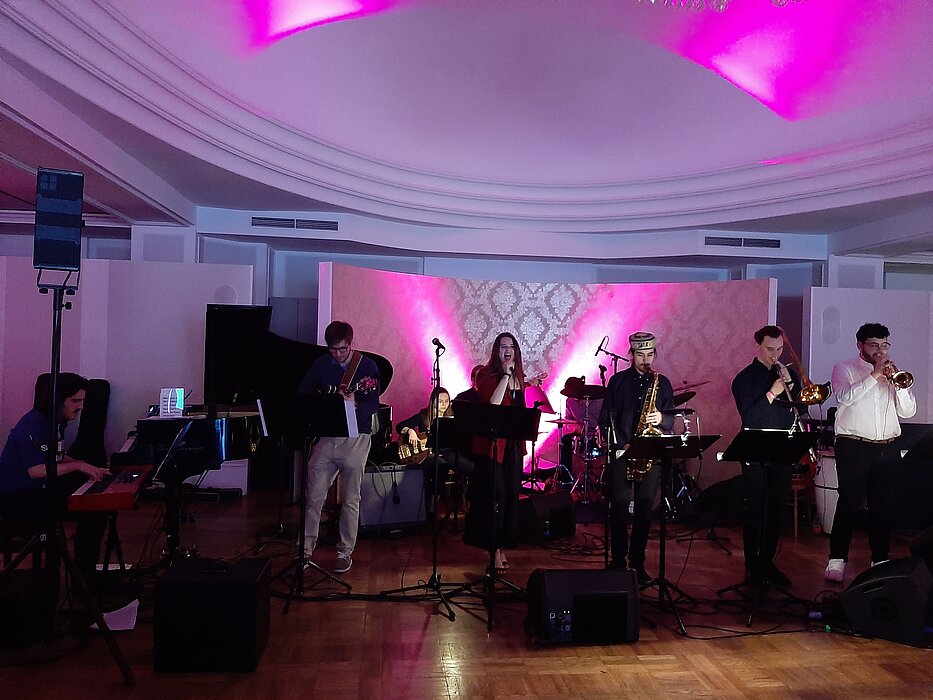 Drei Ensembles – das Traditional Jazz Ensemble, das Funk & Soul Ensemble und das Fusion Ensemble – bestehend aus Musiker*innen des Studiengangs Jazz haben beim Diversity Ball am Samstag, 7. Mai die Tanzfläche zum Schwingen gebracht.