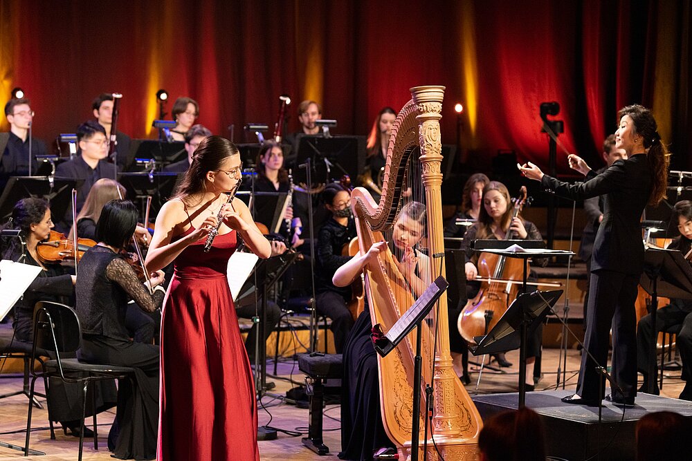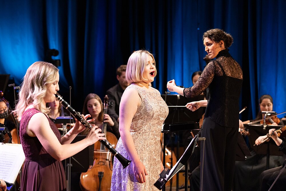 Ein einzigartiges Projekt der beiden größten Musikuniversitäten des Landes in Kooperation mit ORF III geht in die 2. Runde: Nach einem "Fest für Beethoven" widmen sich aufstrebende Talente der beiden Wiener Musikuniversitäten, mdw und MUK, Wolfang Amadé Mozart. Zu hören ist ein bunter Mix aus Solokonzerten - von Violine, Oboe, Fagott über Klarinette bis hin zu Klavier - dem Doppelkonzert für Flöte und Harfe, sowie eine Opernarie bilden die kompositorische Vielfalt des Salzburger Meisterkomponisten ab. Es spielt die Webern Kammerphilharmonie unter der Leitung von Dirigierstudierenden der mdw. Seitens der MUK wirken Katharina Kratochwil (Oboe), Hannah Friedl (Klarinette), Katharina Geroldinger (Flöte) und Amia Janicki (Violine) mit.