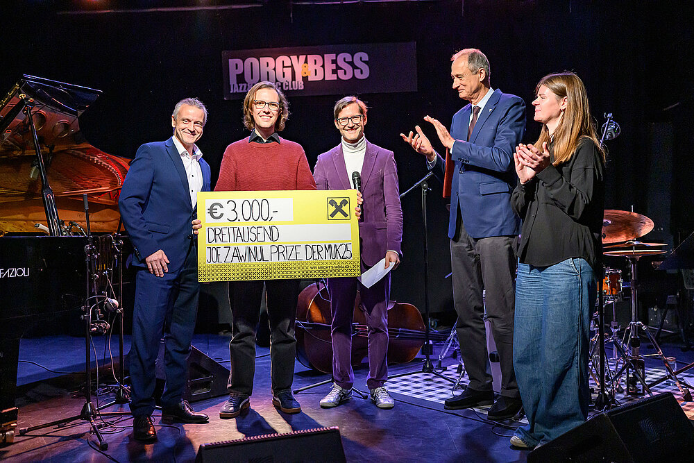 2025 entschied sich die mit externen Musiker*innen, MUK-Lehrenden, Journalist*innen und Musikmanager*innen prominent besetzte Fachjury für Jordi Roviró und sein Projekt Everything has led us to this moment. Übergeben wurde der Preis von Gerhard Zachl, dem Prokuristen von Raiffaisen Wien, für die Moderation sorgte MUK-Professorin und Jazz-Bassistin Beate Wiesinger.