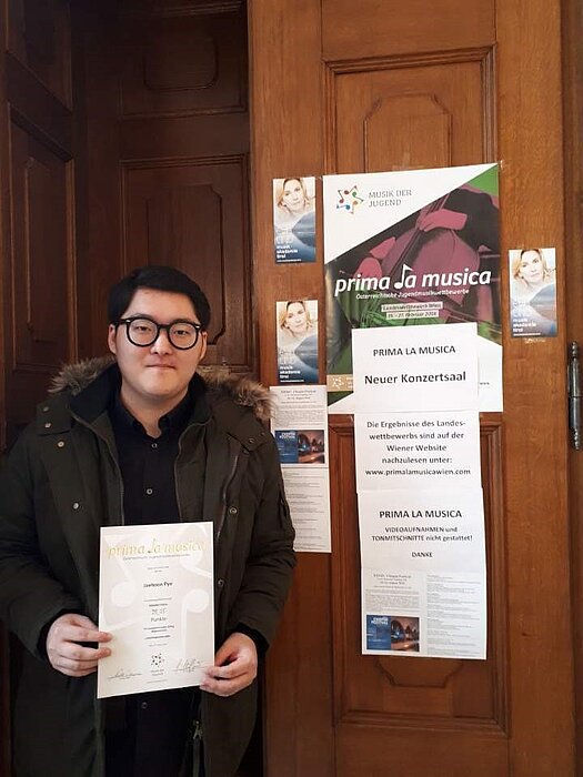 Jaehoon Pyo (Vorbereitungslehrgang Gesang bei Linda Watson) konnte den Wiener Landeswettbewerb 2018 in der Kategorie Gesang, Altersgruppe IV plus mit ausgezeichnetem Erfolg abschließen. Mit 95,25 Punkten ist er sogar als Landessieger aus dem Wettbewerb hervorgegangen.