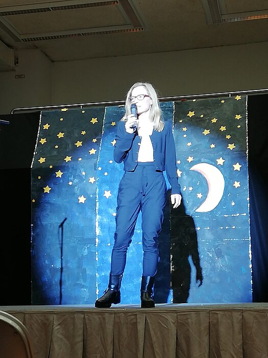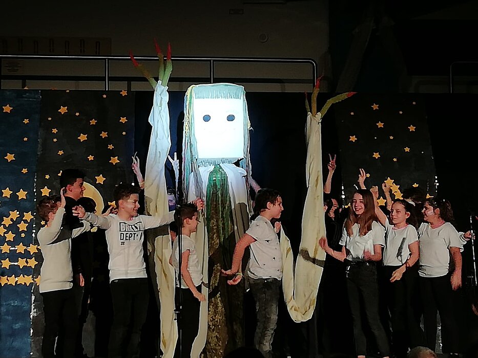 Gekonnt mit Licht und Ton in Szene gesetzt durch Hans Jürgen Neuzil und seinem Team von Schülerinnen und Schülern der 3. Klassen, glänzten die Kinder mit ihrer Fantasie, ihrem Können, mit Konzentration und Begeisterung und bewiesen einmal mehr, wozu sie in der Lage sind, wenn ihre Kreativität gefragt ist und einen künstlerischen Ausdruck findet.