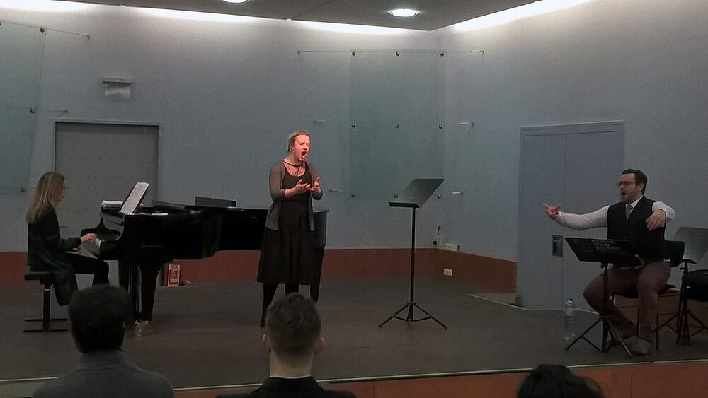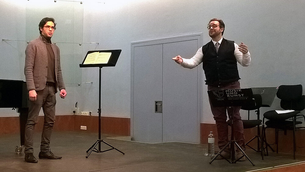 Elise Charrel, Alicja Paulina Ciesielczuk, Sepideh Eslampolchi, Shaked Evron, Steven Fiske, Chloe Kim, Namil Kim und Anna Tyapkina – allesamt Studierende des Studiengangs Gesang und Oper – erhielten am 1. Februar die Möglichkeit, im Rahmen einer Meisterklasse mit dem prominenten Tenor Michael Spyres zu arbeiten. Dieser wiederum freute sich seinerseits über die produktive Arbeit mit dem Gesangsnachwuchs der MUK und zeigte sich vom kreativem Talent der MUK-Studierenden begeistert. Diese konnten von der positiven Kraft und ungeheuren Expertise des Sängers profitieren und steigerten sich ehrgeizig zu sensationellen Leistungen. Gearbeitet wurde dabei u.a. an Werken von Mozart, Rossini, Händel, Dvořák und Verdi.