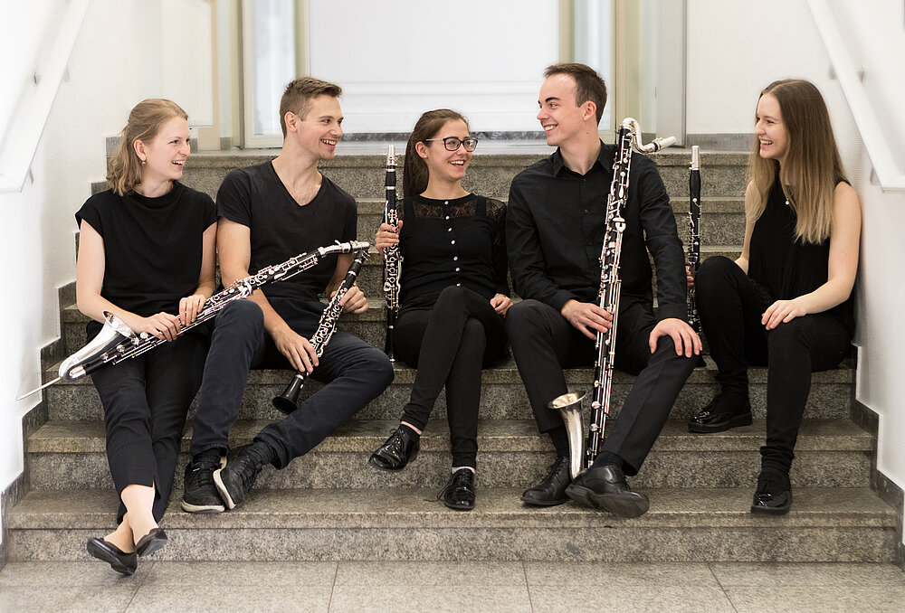 Das Ensemble NA+5 formiert sich aus den fünf jungen, österreichischen Klarinettist*innen Lisa Wagner, Thomas Prem, Hannah Friedl, Johanna Gossner und Manuel Ernst, die sich im Zuge ihres Studiums bei Alexander Neubauer an der Musik und Kunst Privatuniversität der Stadt Wien kennengelernt haben. Für sie stellt es einen besonderen Reiz dar, die Möglichkeiten des Klarinettenensembles auch abseits der üblichen Quartettliteratur in Arrangements für Klarinettenquintett zu ergründen. Beim Musizieren im Ensemble stehen für die jungen Musiker*innen v. a. ein packendes Klangbild und die jugendliche Spielfreude im Mittelpunkt. Ende Oktober erzielte das Ensemble beim 2. Internationalen Franz Cibulka Musikwettbewerb einen 3. Preis. Nun konnten die jungen Musiker*innen die Jury von Musica Juventutis überzeugen und werden in der nächsten Saison 2020/21 bei einem Musica Juventutis-Konzert im Schubertsaal des Wiener Konzerthauses mitwirken.