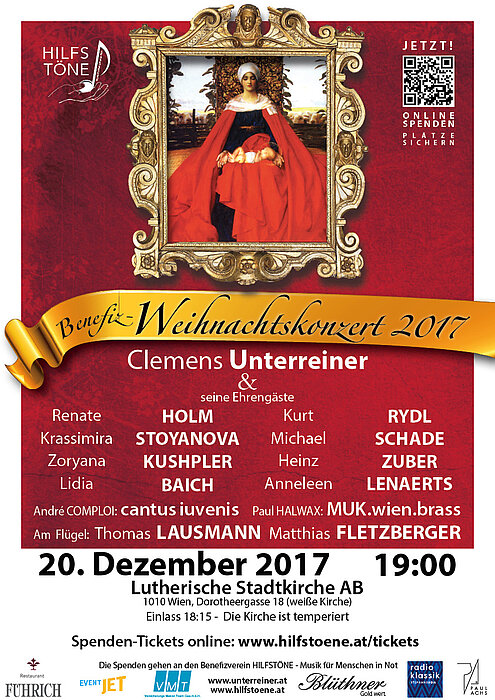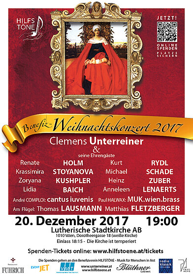 Der Reinerlös des Konzerts geht jedes Jahr an HILFSTÖNE, die damit sorgfältig ausgesuchte karitative, soziale und nachhaltige Projekte für Kinder und Jugendliche mit Krankheiten und besonderen Bedürfnissen unterstützen. Clemens Unterreiner, internationaler Opernsänger und Bariton an der Wiener Staatsoper, gründete den Verein HILFSTÖNE, dem er selbst als Präsident vorsteht, um seine vielen karitativen Aktionen zu bündeln und die Spenden kontrolliert, gezielt und nachhaltig einsetzen zu können.