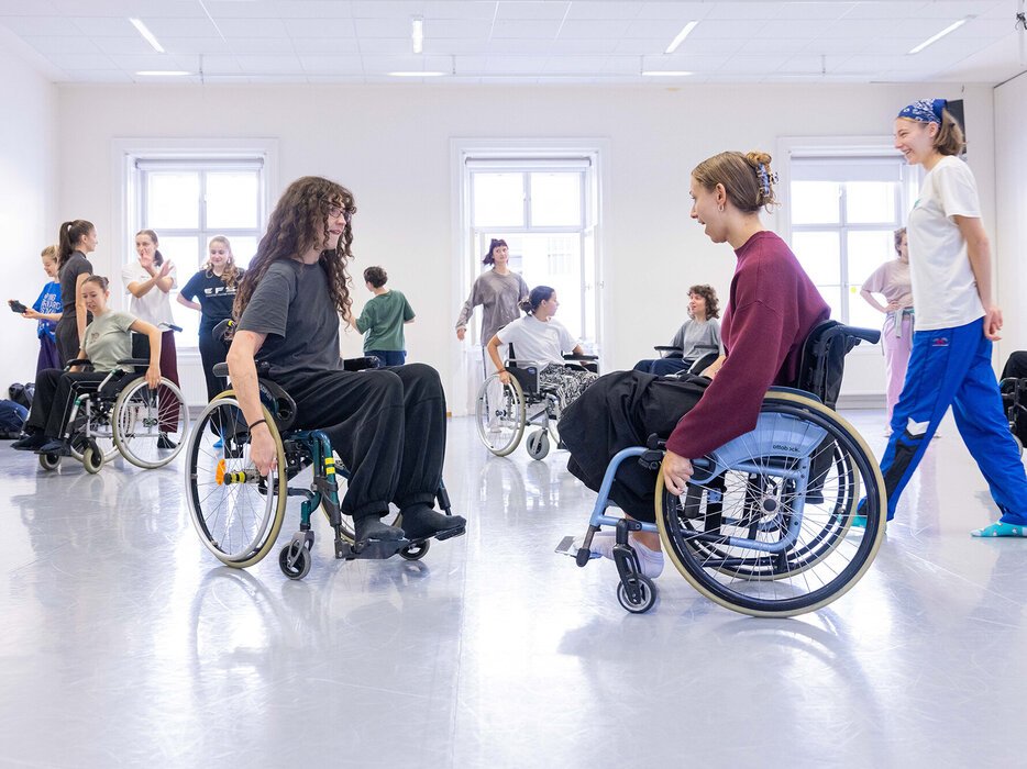 Sehr konkret schickte die Choreografin, Performerin, Tanz- und DanceAbility-Trainerin Vera Rosner die Workshopteilnehmenden in Rollstühlen zur buchstäblichen Selbst-Erfahrung der verschiedenen Universitätsstandorte aus. Die Berichte über diese Expedition unter einer gänzlich neuen Perspektive wurden abschließend in Form einer Performance umgesetzt.