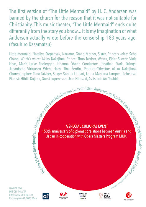 Anlässlich der bereits 150 Jahre anhaltenden diplomatischen Beziehungen zwischen Japan und Österreich wirken zahlreiche Studierende der MUK unter der Leitung von Akiko Nakajima an dieser Kammeroper des japanischen Komponisten Yasuhiro Kasamatsu mit.