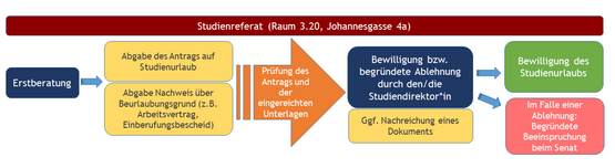 Das Formular „Antrag auf Studienurlaub“ findet sich als Download auf der Website des Studienreferats oder direkt im Studienreferat. Das Formular ist korrekt ausgefüllt mit entsprechenden Nachweisen im Studienreferat einzureichen.