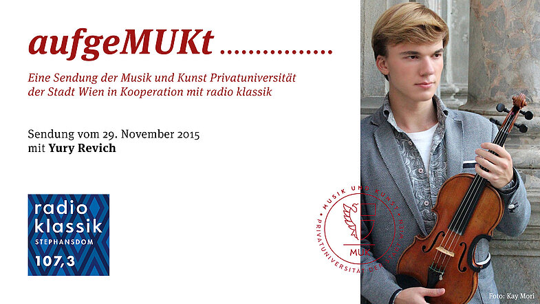 In der ersten Ausgabe von aufgeMUKt! hören Sie ein Porträt des aus Moskau stammenden Geigers Yury Revich. Er macht an der MUK gerade seinen Master und ist bereits Gast auf den großen Konzertbühnen der ganzen Welt