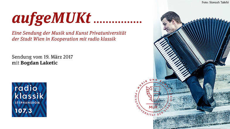 Im Mittelpunkt der 14. Folge steht das Akkordeon. Moderatorin Marion Eigl spricht mit dem Studierenden Bogdan Laketic und seinem Lehrenden Grzegorz Stopa über die Geschichte des Instruments, dessen Verbreitung, ihre Erfolge sowie das Lernen und Lehren an der MUK als vielschichtiger und gegenseitig inspirierender Prozess.