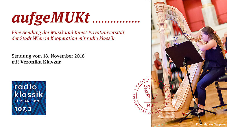 Moderatorin Marion Eigl unterhält sich in der aktuellen Ausgabe der Radiosendung „aufgeMUKt!“ mit Veronica Klavzar und ihrer Lehrenden Gabriela Mossyrsch, die nicht nur MUK-Lehrende sondern auch Soloharfenistin im Orchester der Wiener Volksoper ist, über die gemeinsame Leidenschaft für zeitgenössische Musik und die vielfältigen Möglichkeiten der Harfe vom Solo- bis hin zum Orchesterinstrument.