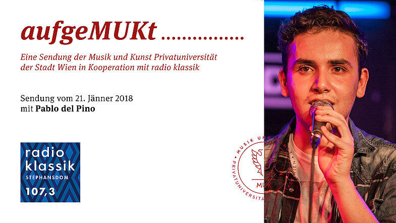 In der 23. Folge der Sendung von radio klassik steht der Jazz-Gesang im Mittelpunkt. Pablo del Pino studiert seit 2016 an der MUK. Johannes Herrlich betreut neben seinem Lehrauftrag für Jazz-Posaune unter anderem ein Vocal Ensemble, wo er auf Pablo del Pino aufmerksam wurde.