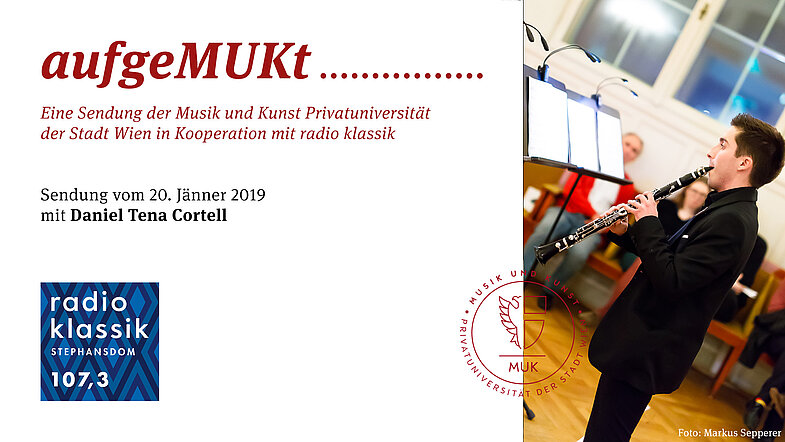 In der 34. Ausgabe von aufgeMUKt! unterhält sich Moderatorin Marion Eigl mit MUK-Professor Reinhard Wieser und seinem aus Valencia stammenden Studenten Daniel Tena Cortell über das edle Handwerk des Klarinette-Spielens. Als Soloklarinettist der Wiener Symphoniker kann er seinen reichen Erfahrungsschatz in den Unterricht an der Musik und Kunst Privatuniverstität der Stadt Wien einfließen lassen. Ein Gespräch über edles Handwerk, den Wiener Klang und Salzlöffelklappen.