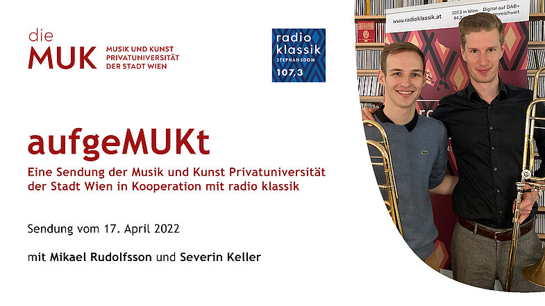 Zu Gast im Studio bei Marion Eigl sind Mikael Rudolfsson und Severin Keller. Rudolfsson ist einer der kreativsten Solisten der europäischen Neue Musik-Szene und seit 2017 Posaunist des Klangforum Wien. Für ihn ist sein Instrument zu einer Art Gesang geworden. Ein Medium, durch welches er spricht. Das Thema neue Spieltechniken auf der Posaune ist ihm ein großes Anliegen. Damit stößt er bei seinem Studenten Severin Keller auf offene Ohren. Der macht gerade seinen Master an der MUK.