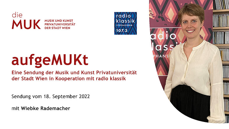Seit September 2021 ist die deutsche Musikvermittlerin und Musikwissenschaftlerin Wiebke Rademacher an der MUK tätig. Hier unterrichtet sie einerseits Kunst- und Kulturvermittlung im Master of Arts Education (MAE) sowie im Studiengang Instrumental- und Gesangspädagogik (IGP) und ist am Zentrum für Wissenschaft und Forschung (ZWF) tätig. Im Gespräch mit Marion Eigl ist sowohl das Bachelor-Studium IGP Thema wie zukünftige Projekte, Inspirationsquellen und das gegenseitige Befruchten von Kunst und Forschung.