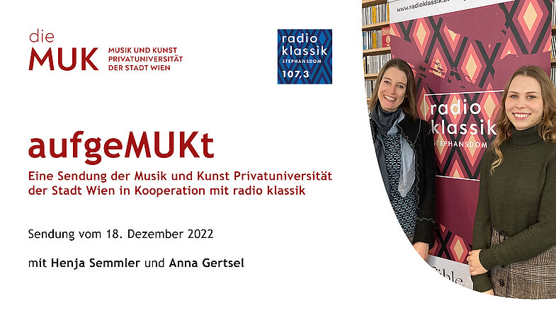 Zu Gast bei Marion Eigl sind in dieser Ausgabe von aufgeMUKt Edith Wregg und Anna Buchal. Sie sprechen über das viersemestrige, interdisziplinäre und forschungsgeleitete Vollzeitstudium Master of Arts Education.