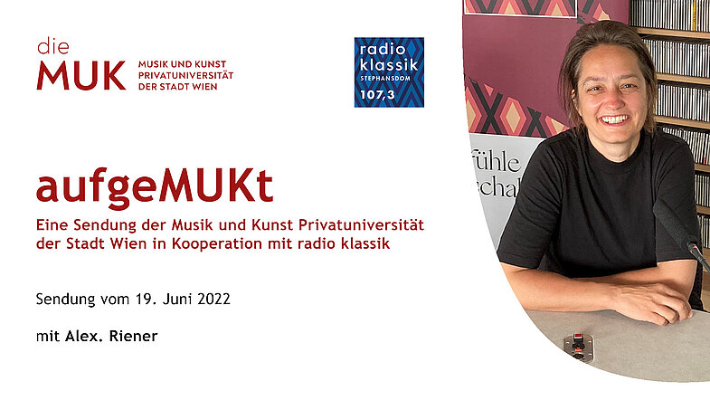 Seit September 2021 unterrichtet Alex. Riener an der MUK, mit Dezember 2021 hat sie die Studiengangsleitung Musikalisches Unterhaltungstheater übernommen. Nach ihren ersten Monaten in dieser Funktion nimmt sie bei Marion Eigl im radio klassik Stephansdom-Studio Platz, erzählt von ihrem bisherigen Weg und spricht über das Vermitteln zwischen den einzelnen Genres.