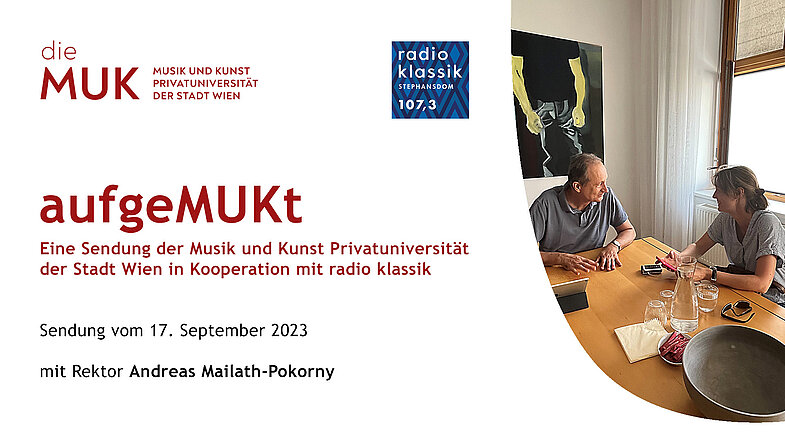 Promovieren an der MUK ist ab dem kommenden Semester durch das neue sechssemestrige postgraduale Programm möglich. Die Vizerektorin der MUK, Rosemarie Brucher und Joonas Lahtinen, die das Programm leiten, sprechen in der aktuellen aufgemukt!-Sendung über Anforderungen und Ziele des neu akkreditierten Studiums.