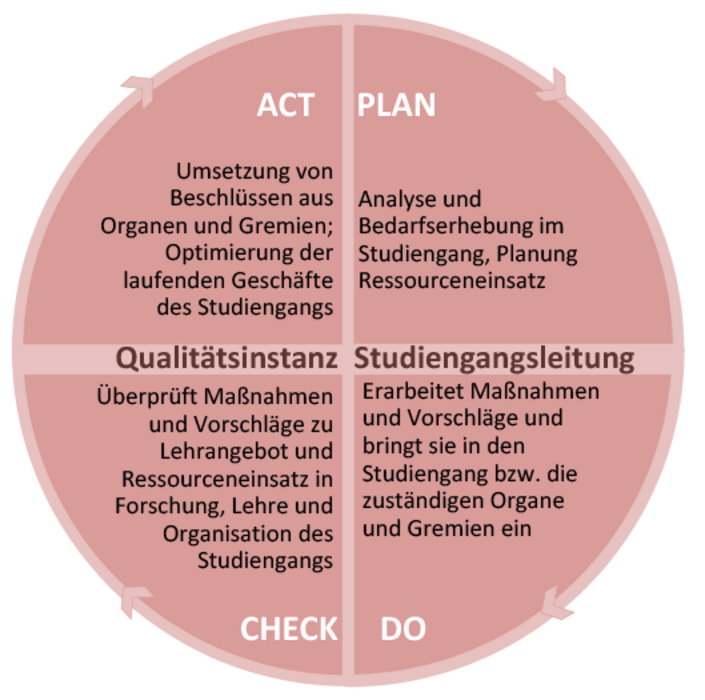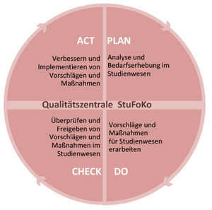 Courses are surveyed semester by semester in a standardized time frame and serve to check (see presentation of the effectiveness check) the course contents and goals, the examination methods, the admission requirements, the time and location of the courses as well as all other course-relevant parameters in the individual departments. Should there be a need for changes in the courses of these curricula, the further implementation is the responsibility of the heads of departments, the respective study and research commissions, the senate and the rectorate and shall be carried out in accordance with the regulations of the statutes.