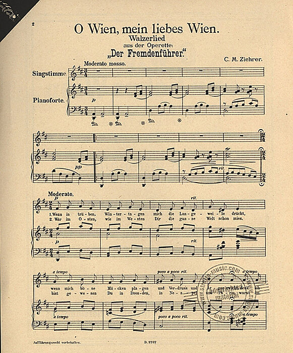 „O Wien, mein liebes Wien“, die melancholische Walzermelodie klingt nach wie vor in unseren Ohren, auch wenn der Name ihres Komponisten Carl Michael Ziehrer damit vielleicht nicht mehr in Verbindung gebracht wird. Seine Meisteroperetten Der Liebeswalzer, Der Fremdenführer sowie die turbulenten Landstreicher stehen jenen von Millöcker oder Strauss um nichts nach. Opern- und andere Bälle werden weltweit mit seiner Fächerpolonaise eröffnet, sein Walzer Herrreinspaziert!! reißt alle aus den Sitzen, ebenso wie seine Bad‘ner Madln immer noch verzaubern. Als letzter Hofballmusikdirektor besang er den letzten Glanz der dem Untergang geweihten Donaumonarchie und ihrer Metropole: Liebe, schöne alte Donaustadt. Vor 100 Jahren, im Noverber 1922, verstarb Carl Michael Ziehrer, einer ihrer großen Komponisten.
