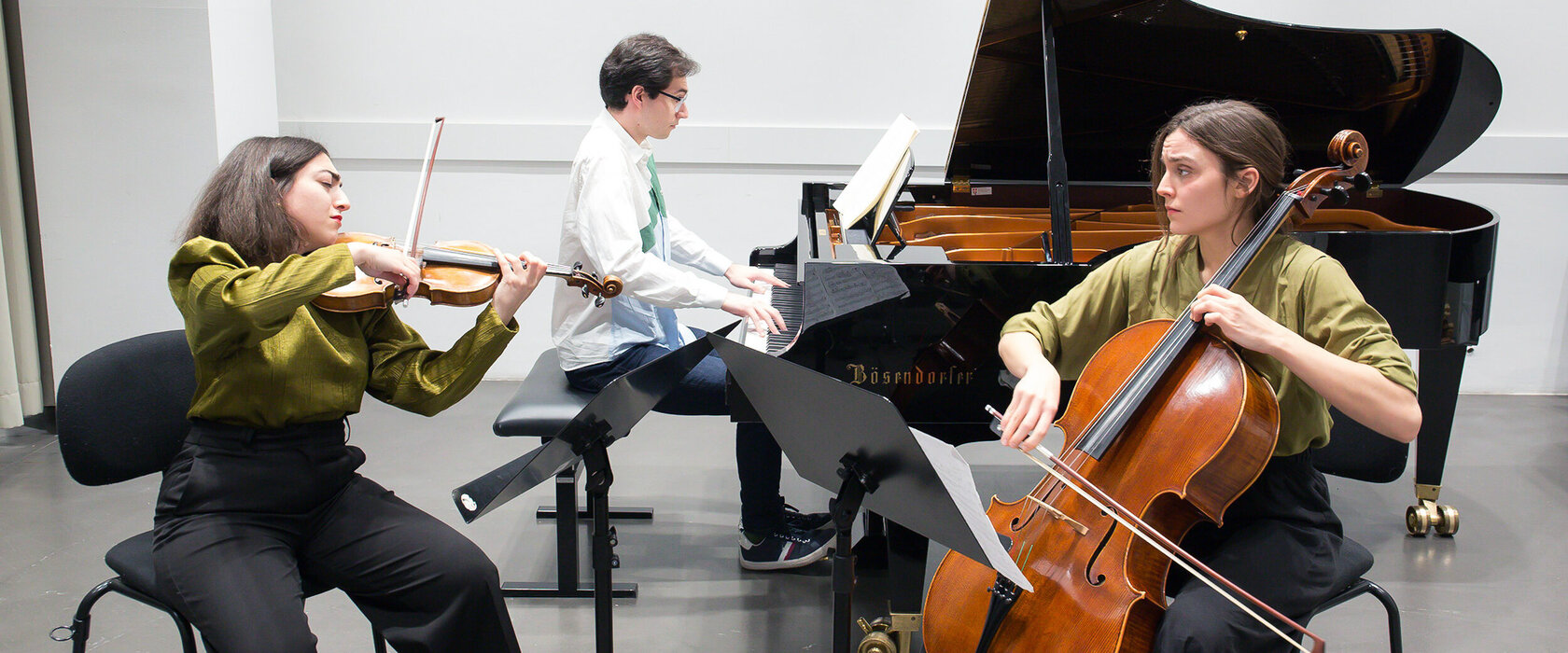 Violinistin Sofya Vardanyan, Cellistin Ana Šincek und Pianist Andrey Kurbet traten beim Auswahlspiel am 25. November vor die Jury und konnten sich gegen die hochkarätige Konkurrenz durchsetzen.